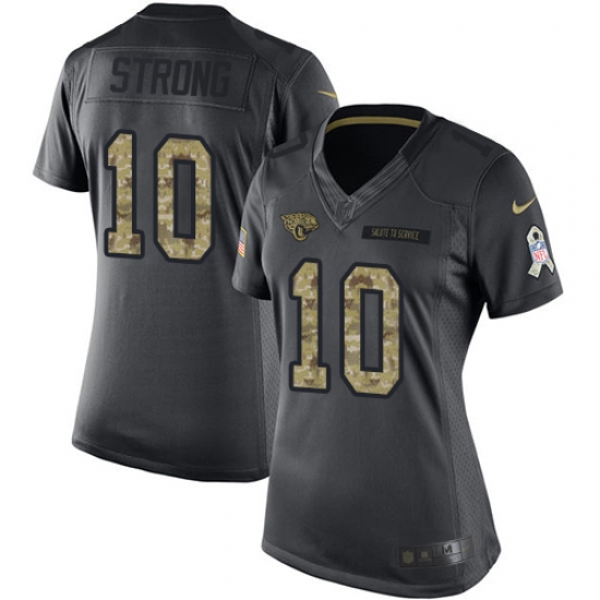 Home>NFL>Jacksonville Jaguars>Jaelen Strong>Women's Nike Jacksonville Jaguars #10 Jaelen Strong Limited Black 2016 Salute to Service NFL Jersey
