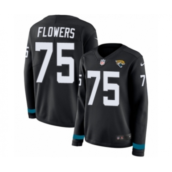 Women's Nike Jacksonville Jaguars #75 Ereck Flowers Limited Black Therma Long Sleeve NFL Jersey
