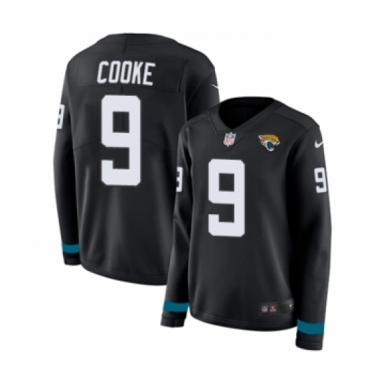 >Women's Nike Jacksonville Jaguars #9 Logan Cooke Limited Black Therma Long Sleeve NFL Jersey