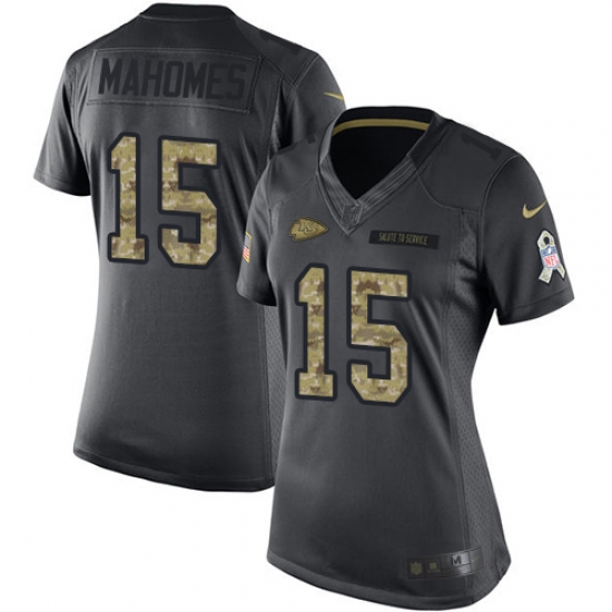 Women's Nike Kansas City Chiefs #15 Patrick Mahomes Black Stitched NFL Limited 2016 Salute to Service Jersey