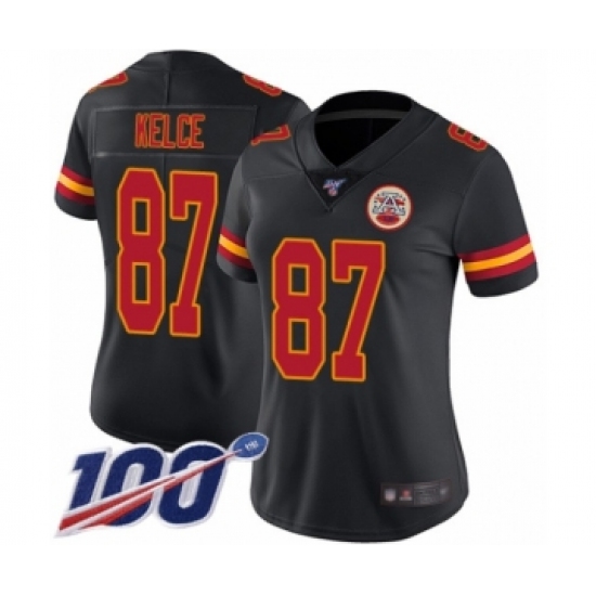 >Women's Nike Kansas City Chiefs #87 Travis Kelce Limited Black Rush Vapor Untouchable 100th Season NFL Jersey
