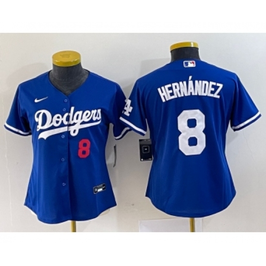 Women's Nike Los Angeles Dodgers #8 Kike Hernandez Number Blue Stitched Cool Base Jersey