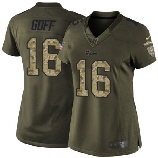 Women's Nike Los Angeles Rams #16 Jared Goff Elite Green Salute to Service NFL Jersey