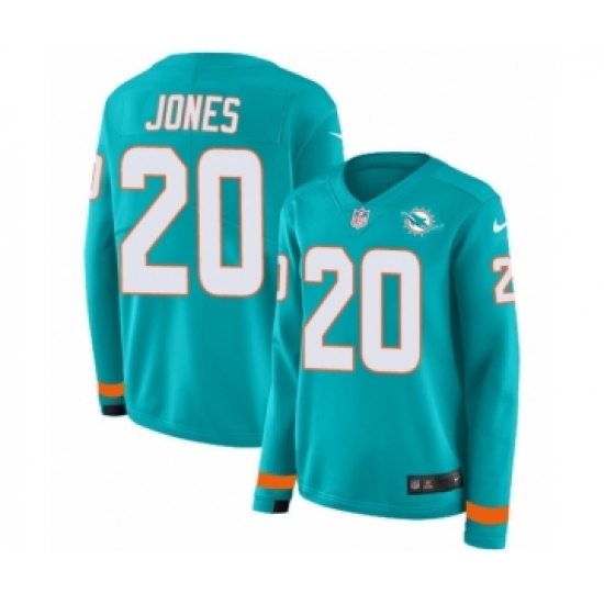 >Women's Nike Miami Dolphins #20 Reshad Jones Limited Aqua Therma Long Sleeve NFL Jersey