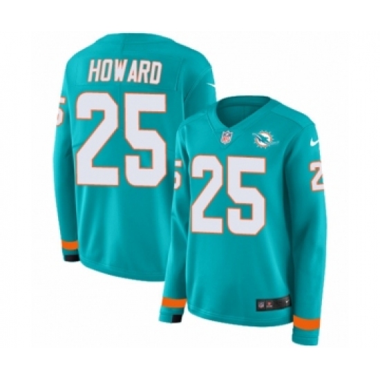 >Women's Nike Miami Dolphins #25 Xavien Howard Limited Aqua Therma Long Sleeve NFL Jersey