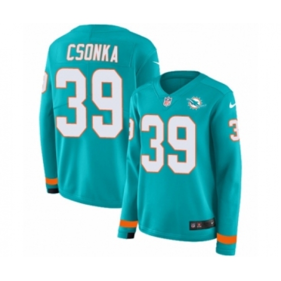 >Women's Nike Miami Dolphins #39 Larry Csonka Limited Aqua Therma Long Sleeve NFL Jersey
