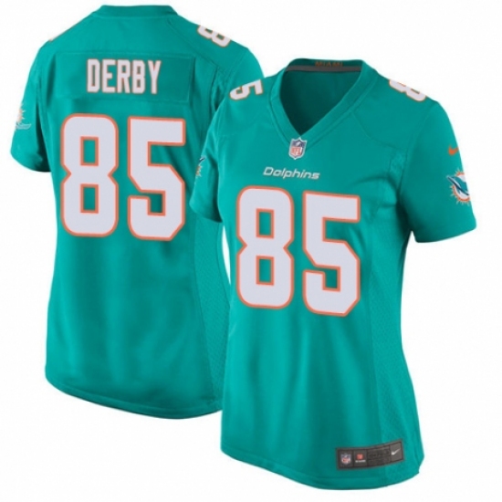 >Women's Nike Miami Dolphins #85 A.J. Derby Game Aqua Green Team Color NFL Jersey