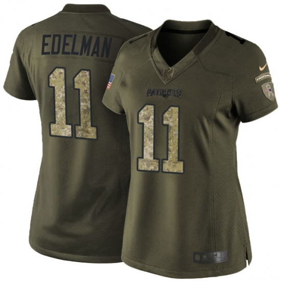 Home>NFL>New England Patriots>Julian Edelman>Women's Nike New England Patriots #11 Julian Edelman Elite Green Salute to Service NFL Jersey