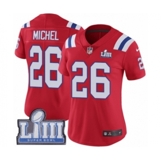 Women's Nike New England Patriots #26 Sony Michel Red Alternate Vapor Untouchable Limited Player Super Bowl LIII Bound NFL Jersey