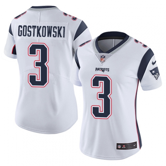 Home>NFL>New England Patriots>Stephen Gostkowski>Women's Nike New England Patriots #3 Stephen Gostkowski White Vapor Untouchable Limited Player NFL Jersey
