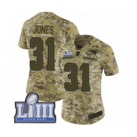 >Women's Nike New England Patriots #31 Jonathan Jones Limited Camo 2018 Salute to Service Super Bowl LIII Bound NFL Jersey