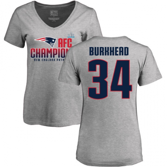 Women's Nike New England Patriots #34 Rex Burkhead Heather Gray 2017 AFC Champions V-Neck T-Shirt