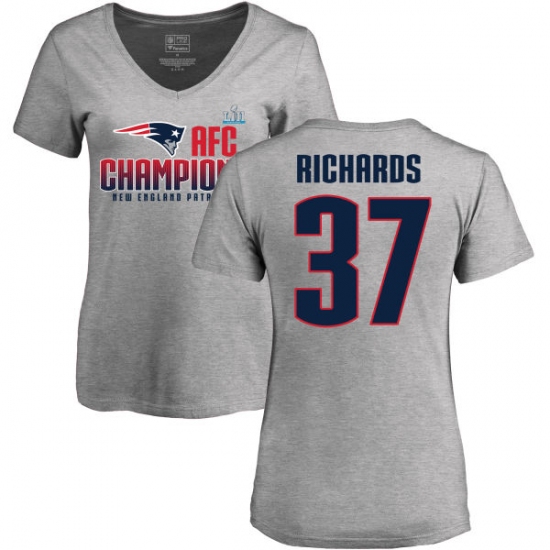>Women's Nike New England Patriots #37 Jordan Richards Heather Gray 2017 AFC Champions V-Neck T-Shirt