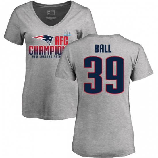 >Women's Nike New England Patriots #39 Montee Ball Heather Gray 2017 AFC Champions V-Neck T-Shirt