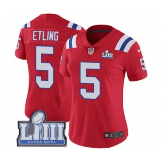 >Women's Nike New England Patriots #5 Danny Etling Red Alternate Vapor Untouchable Limited Player Super Bowl LIII Bound NFL Jersey