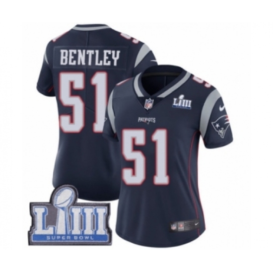 Women's Nike New England Patriots #51 Ja'Whaun Bentley Navy Blue Team Color Vapor Untouchable Limited Player Super Bowl LIII Bound NFL Jersey