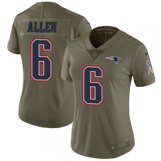 Home>NFL>New England Patriots>Ryan Allen>Women's Nike New England Patriots #6 Ryan Allen Limited Olive 2017 Salute to Service NFL Jersey