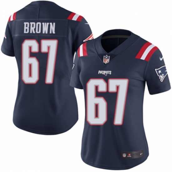 Women's Nike New England Patriots #67 Trent Brown Limited Navy Blue Rush Vapor Untouchable NFL Jersey