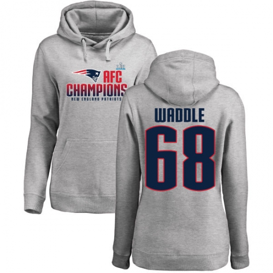 >Women's Nike New England Patriots #68 LaAdrian Waddle Heather Gray 2017 AFC Champions Pullover Hoodie