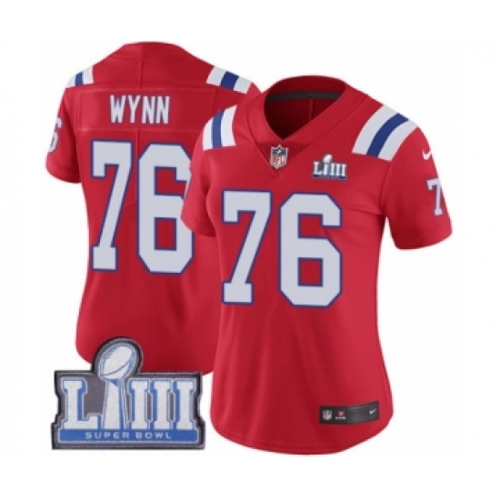 Women's Nike New England Patriots #76 Isaiah Wynn Red Alternate Vapor Untouchable Limited Player Super Bowl LIII Bound NFL Jersey