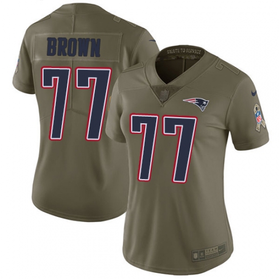 >Women's Nike New England Patriots #77 Trent Brown Limited Olive 2017 Salute to Service NFL Jersey