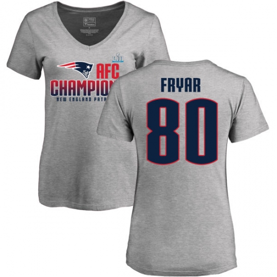 >Women's Nike New England Patriots #80 Irving Fryar Heather Gray 2017 AFC Champions V-Neck T-Shirt
