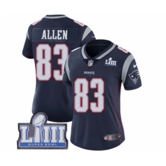 Women's Nike New England Patriots #83 Dwayne Allen Navy Blue Team Color Vapor Untouchable Limited Player Super Bowl LIII Bound NFL Jersey