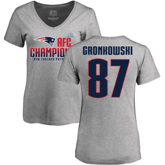 >Women's Nike New England Patriots #87 Rob Gronkowski Heather Gray 2017 AFC Champions V-Neck T-Shirt