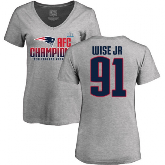 >Women's Nike New England Patriots #91 Deatrich Wise Jr Heather Gray 2017 AFC Champions V-Neck T-Shirt