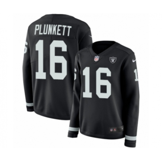 >Women's Nike Oakland Raiders #16 Jim Plunkett Limited Black Therma Long Sleeve NFL Jersey