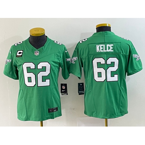 >Women's Nike Philadelphia Eagles #62 Jason Kelce Green 2023 F.U.S.E. Vapor Untouchable C Stitched Football Jersey