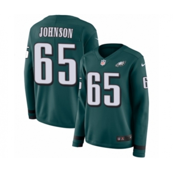 Women's Nike Philadelphia Eagles #65 Lane Johnson Limited Green Therma Long Sleeve NFL Jersey