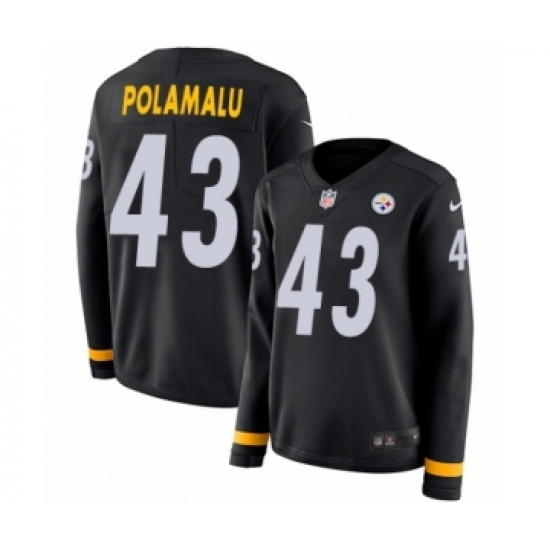 >Women's Nike Pittsburgh Steelers #43 Troy Polamalu Limited Black Therma Long Sleeve NFL Jersey