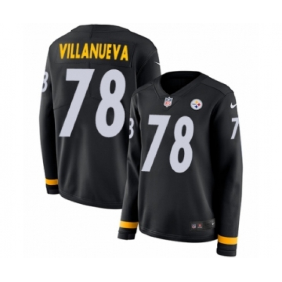 Women's Nike Pittsburgh Steelers #78 Alejandro Villanueva Limited Black Therma Long Sleeve NFL Jersey