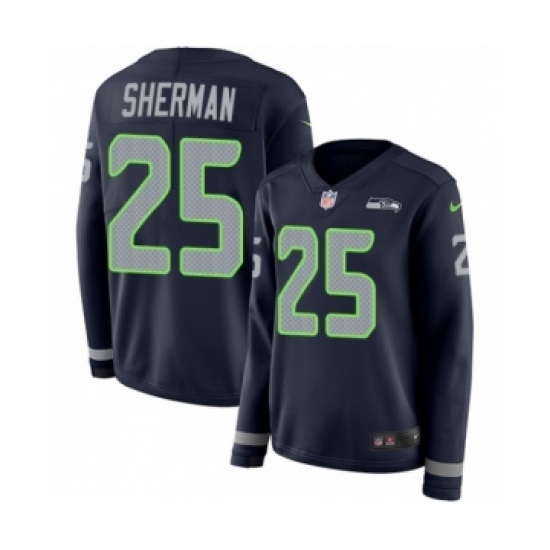 >Women's Nike Seattle Seahawks #25 Richard Sherman Limited Navy Blue Therma Long Sleeve NFL Jersey