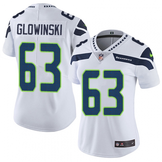 Home>NFL>Seattle Seahawks>Mark Glowinski>Women's Nike Seattle Seahawks #63 Mark Glowinski White Vapor Untouchable Limited Player NFL Jersey