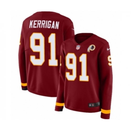 Women's Nike Washington Redskins #91 Ryan Kerrigan Limited Burgundy Therma Long Sleeve NFL Jersey