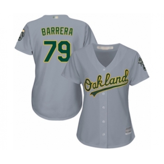 >Women's Oakland Athletics #79 Luis Barrera Authentic Grey Road Cool Base Baseball Player Jersey