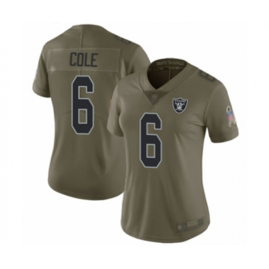 >Women's Oakland Raiders #6 A.J. Cole Limited Olive 2017 Salute to Service Football Jersey