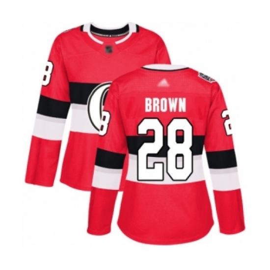 >Women's Ottawa Senators #28 Connor Brown Authentic Red 2017 100 Classic Hockey Jersey