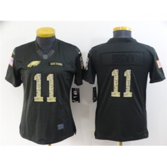 Women's Philadelphia Eagles #11 A. J. Brown Black Salute To Service Stitched Football Jersey(Run Small)