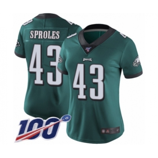 >Women's Philadelphia Eagles #43 Darren Sproles Midnight Green Team Color Vapor Untouchable Limited Player 100th Season Football Jersey