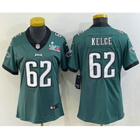 Women's Philadelphia Eagles #62 Jason Kelce Limited Green Super Bowl LVII Vapor Jersey