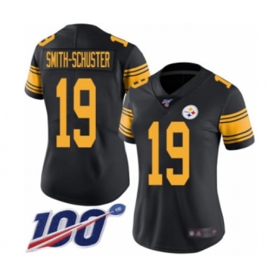 Women's Pittsburgh Steelers #19 JuJu Smith-Schuster Limited Black Rush Vapor Untouchable 100th Season Football Jersey