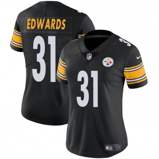 >Women's Pittsburgh Steelers #31 Daijun Edwards 2024 Black Vapor Stitched Jersey(Run Small)