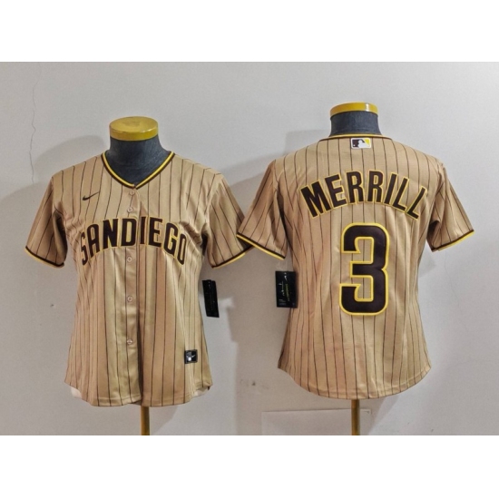 Women's San Diego Padres #3 Jackson Merrill Tan Stitched Baseball Jersey(Run Small)