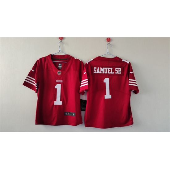 Women's San Francisco 49ers #1 Deebo Samuel Sr. Red Football Stitched Jersey(Run Small)