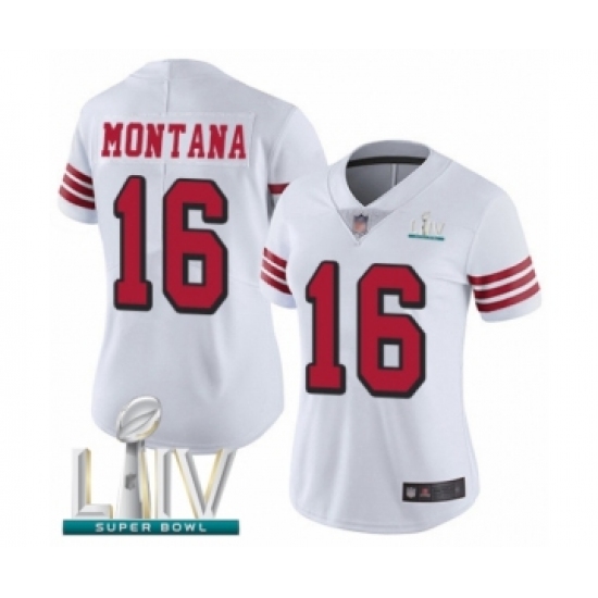 Women's San Francisco 49ers #16 Joe Montana Limited White Rush Vapor Untouchable Super Bowl LIV Bound Football Jersey