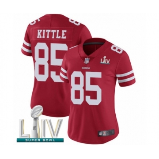 >Women's San Francisco 49ers #85 George Kittle Red Team Color Vapor Untouchable Limited Player Super Bowl LIV Bound Football Jersey