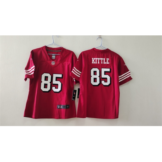 >Women's San Francisco 49ers #85 George Kittle Red Vapor Alternate Football Stitched Jersey(Run Small)